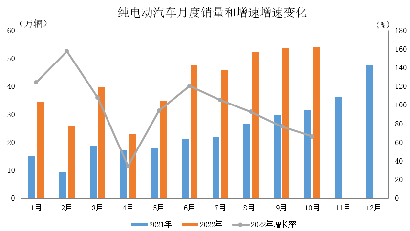 10月,新能源汽車產銷分別完成76.2萬輛和71.4萬輛,同比分別增長87.6%和81.7%,市場占有率達到28.5%。1-10月,新能源汽車產銷分別完成548.5萬輛和528萬輛,同比均增長1.1倍,市場占有率達到24%。