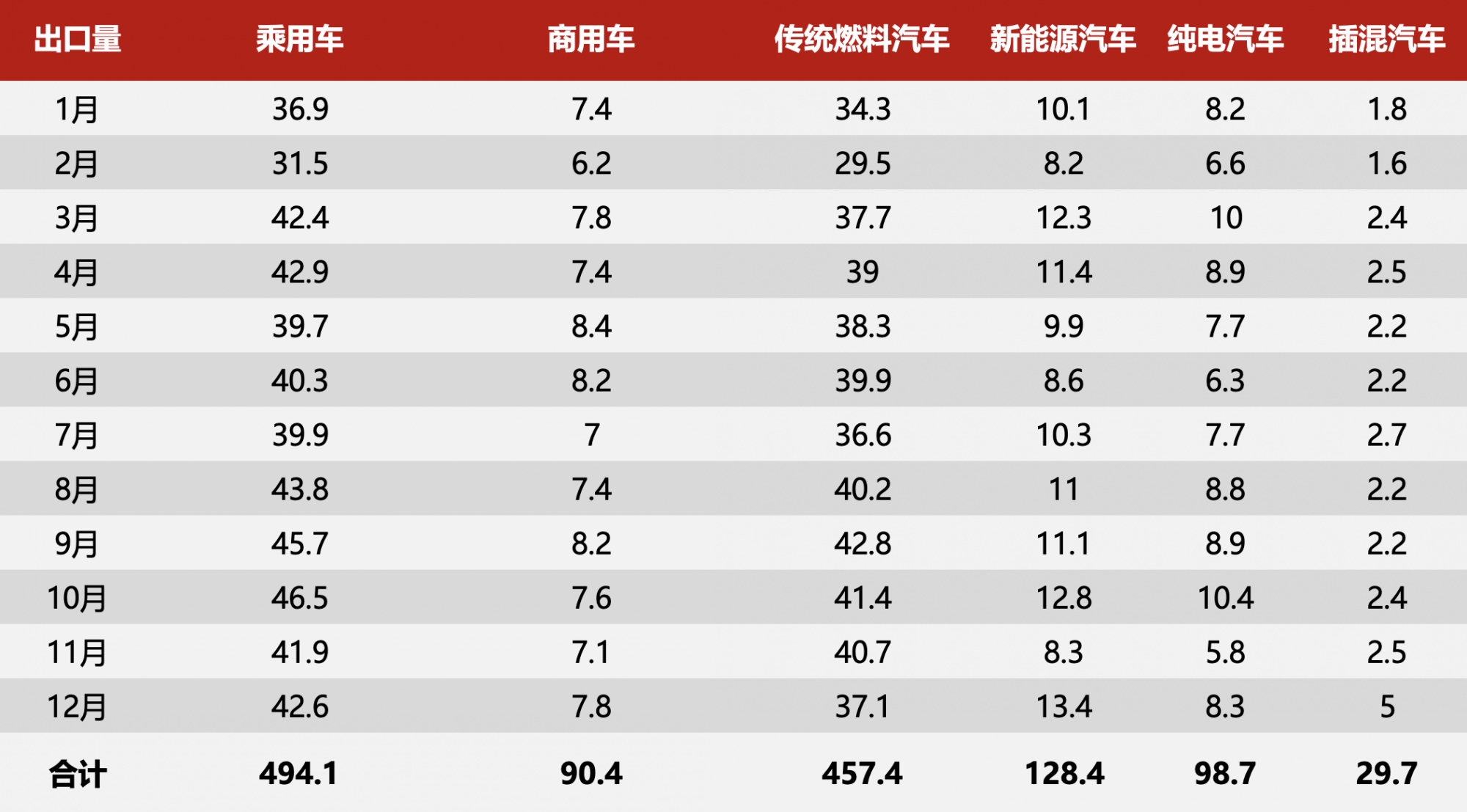 ◎ 傳統(tǒng)燃料汽車全年出口量為 457.4 萬輛,同比增長幅度較大,達(dá)到 23.50%;