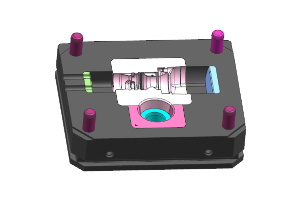 1. 此項目屬汽車類模具,產品氣密性要求比較嚴格,模具入料方案采用在壁厚位置撘底的方案,減少產品表面后處理工序;