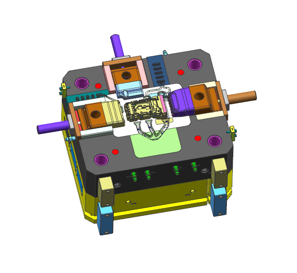 產品側面的倒扣特征采用斜頂結構,斜頂座滑動結構采用圓頭方式,保證了斜頂在運行中的穩定性。