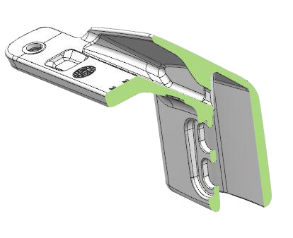 本公司設計的修飾模具,采用了全包圍式的結構設計,通過下模定位,上模沖剪的結構,實現了生產過程的穩定和精度要求;