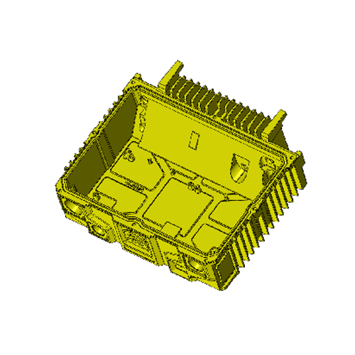 使用倒灌型入料方式,保證了壁厚、散熱片位置的成型,減少了沙孔、縮孔風(fēng)險(xiǎn)的發(fā)生。