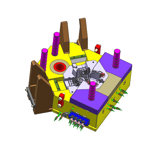 滑塊座兩側(cè)采用斜拉板代替斜導(dǎo)柱結(jié)構(gòu),使滑塊活動時受力更均衡平穩(wěn)。